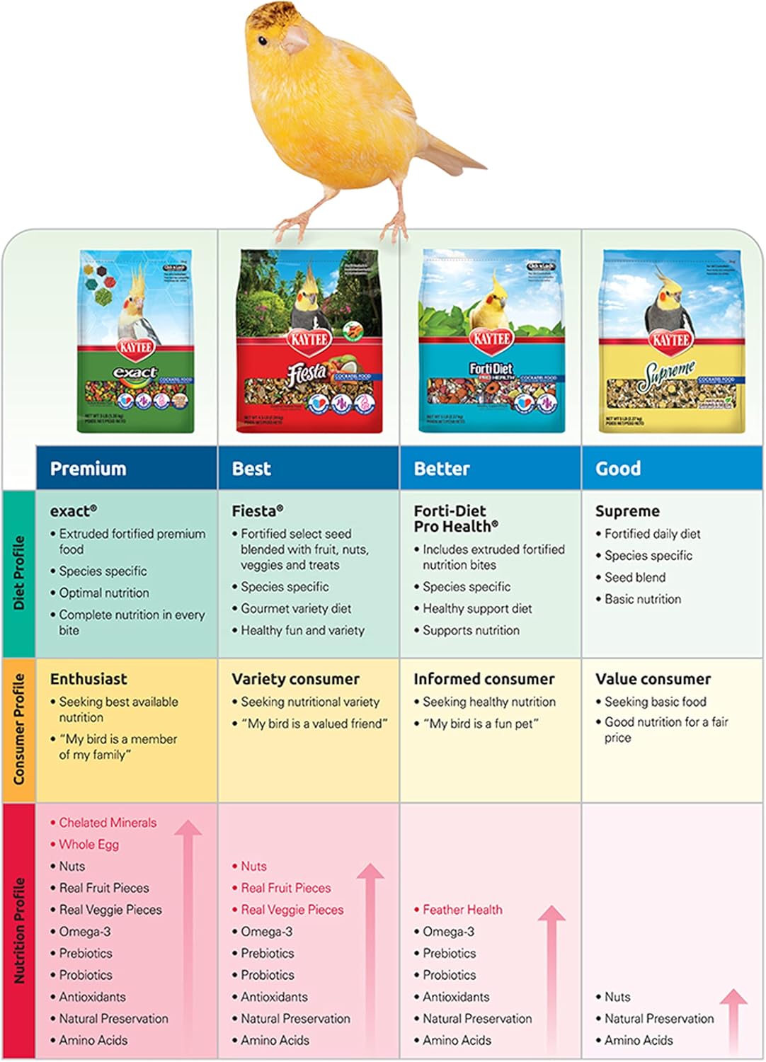 Each nugget contains "exact nutrition" ensuring your bird gets exactly the right nutrition to produce better feathering, brighter colors and maintain excellent health. exact Natural contains the same great nutrition as exact Rainbow, without any added artificial colors. Kaytee understands that sharing your life with a pet bird is not only enjoyable but very enriching. Kaytee shows our love by ensuring we provide your pet bird with the best nutrition for a long and healthy life.