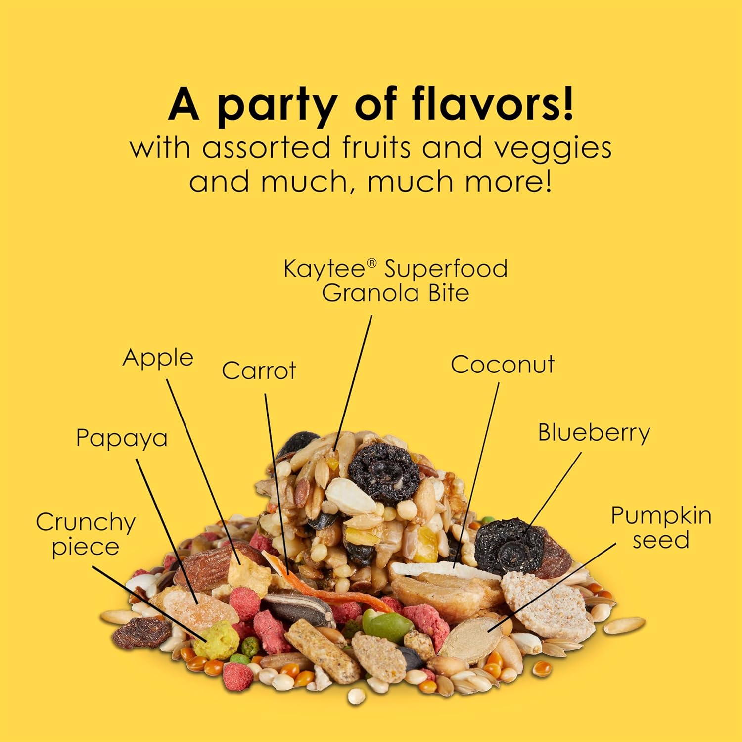 Rich in antioxidants and containing prebiotics and probiotics, Kaytee Fiesta is more than jut a party at mealtime. This blend was developed by a pet bird nutritionist to support general health, including brain, digestive and skin and feather health.