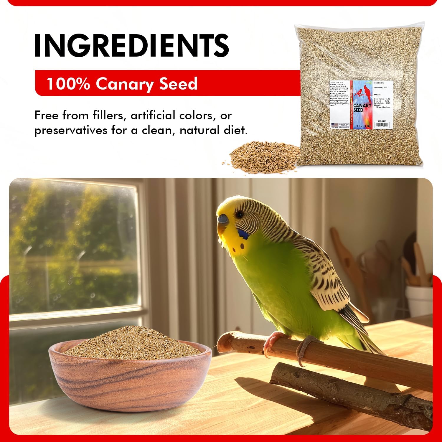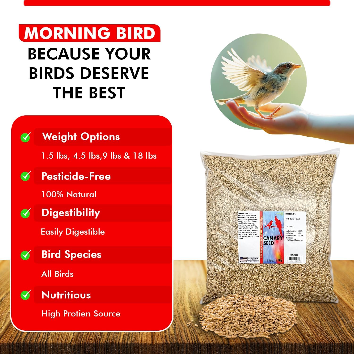 Morning Bird Canary Seed u2013 Nutritional Rich in Vitamins and Supplements for Birds u2013 Ideal for Healthy Feathers and Strong Bones Seed for All Birds Type 9 lbs